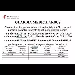 Si comunica che, per cause non dipendenti dalla ASL, non sarà possibile garantire l'operatività del punto guardia medica